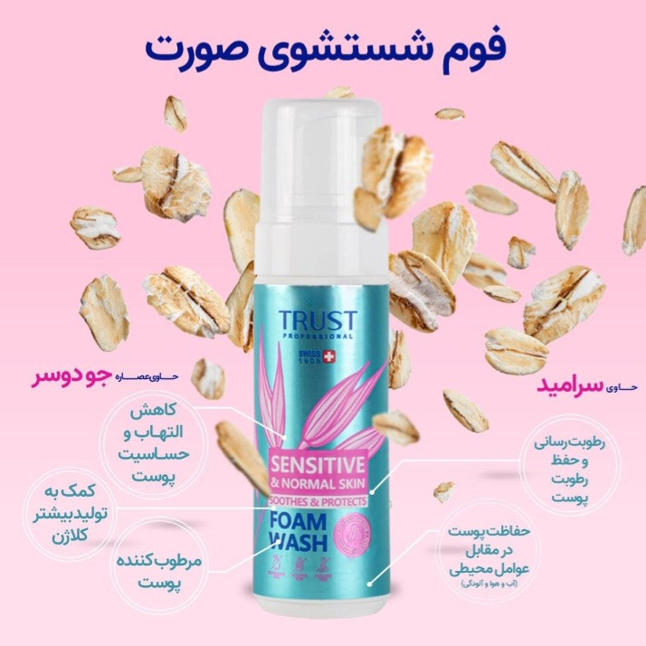 فوم شستشوی صورت تراست برای پوستهای حساس و نرمال طراحی شده تا تجربهای لذتبخش و اثربخش در پاکسازی صورت را در اختیار مصرفکنندگان قرار دهد. این محصول از تکنولوژی «سنسیبابل / SensiBubble» بهره میبرد که با ایجاد یک فوم حبابی جذاب حین شستشو، پاکسازی پوست را به یکی از مراحل دلپذیر در روتین مراقبت از پوست بدل میکند. فوم شستشوی تراست، با طراحی اثربخشی که دارد، چربی، کثیفی و آلودگیهای موجود را از روی سطح پوست از بین میبرد تا پوستی تمیز و سالم داشته باشید.